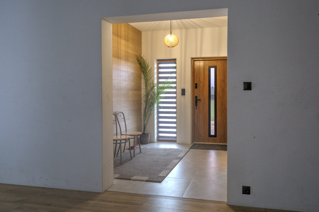 Ten przestronny budynek mieszkalny powstał w tradycyjnej technologii murowanej z bloczków gazobetonowych typu suporex. Dom został oddany do użytkowania w maju 2023 roku. Bryła budynku sprzyja jego funkcjonalności i stwarza duże możliwości ostatecznej aranżacji przestrzeni według własnych potrzeb mieszkaniowych, a do tego poziom poddasza użytkowego mogący pełnić nie tylko funkcje mieszkaniowe. To godne uwagi miejsce np. na własne biuro, przy prowadzeniu działalności gospodarczej.
