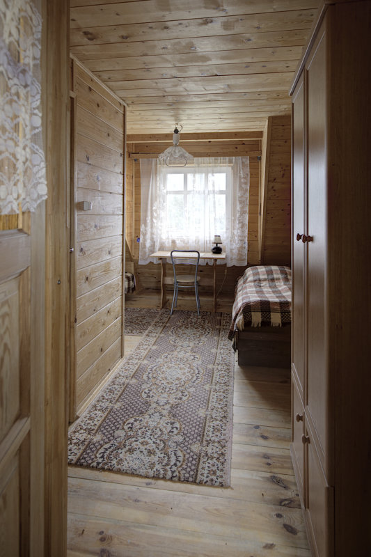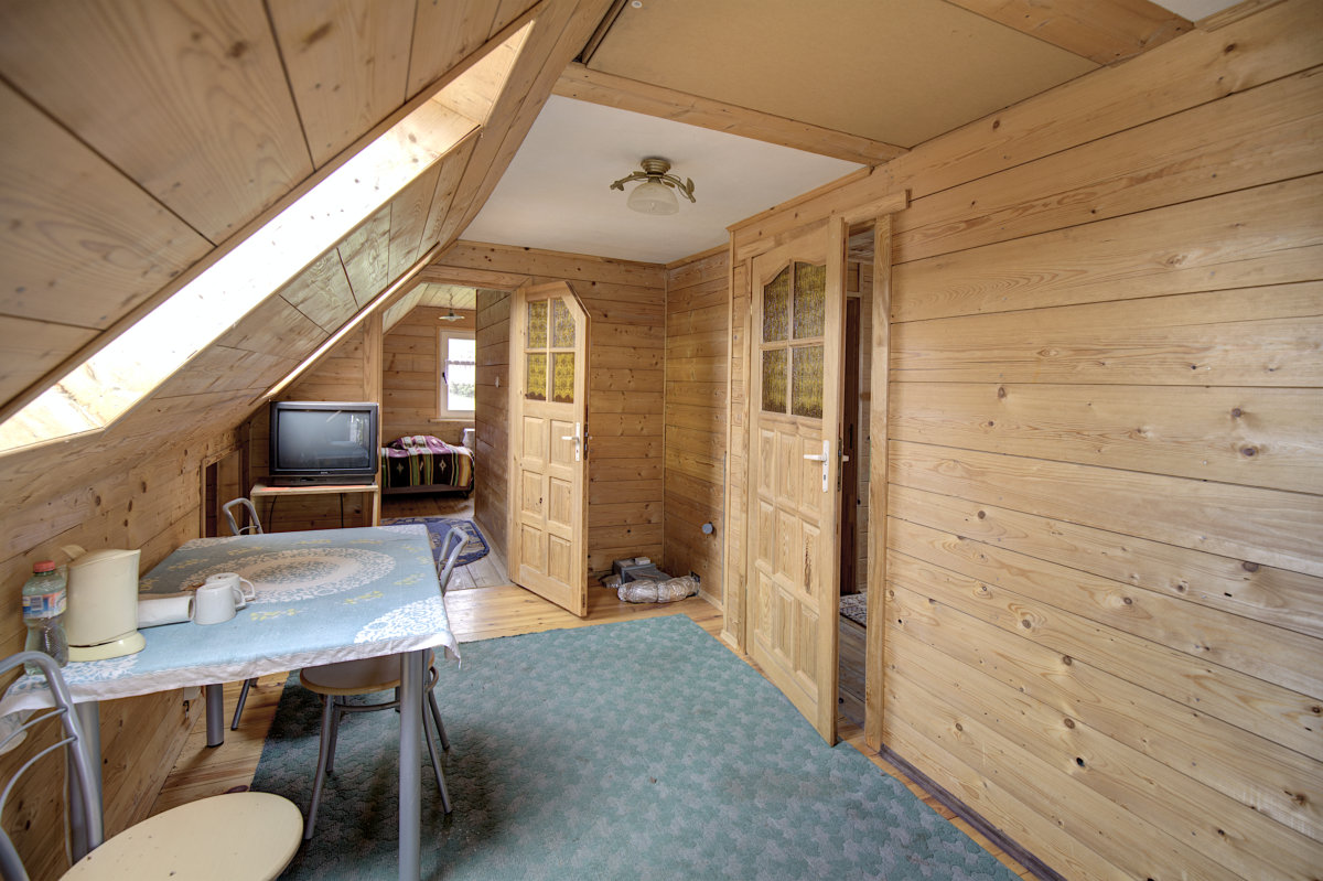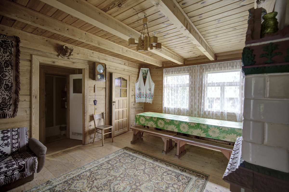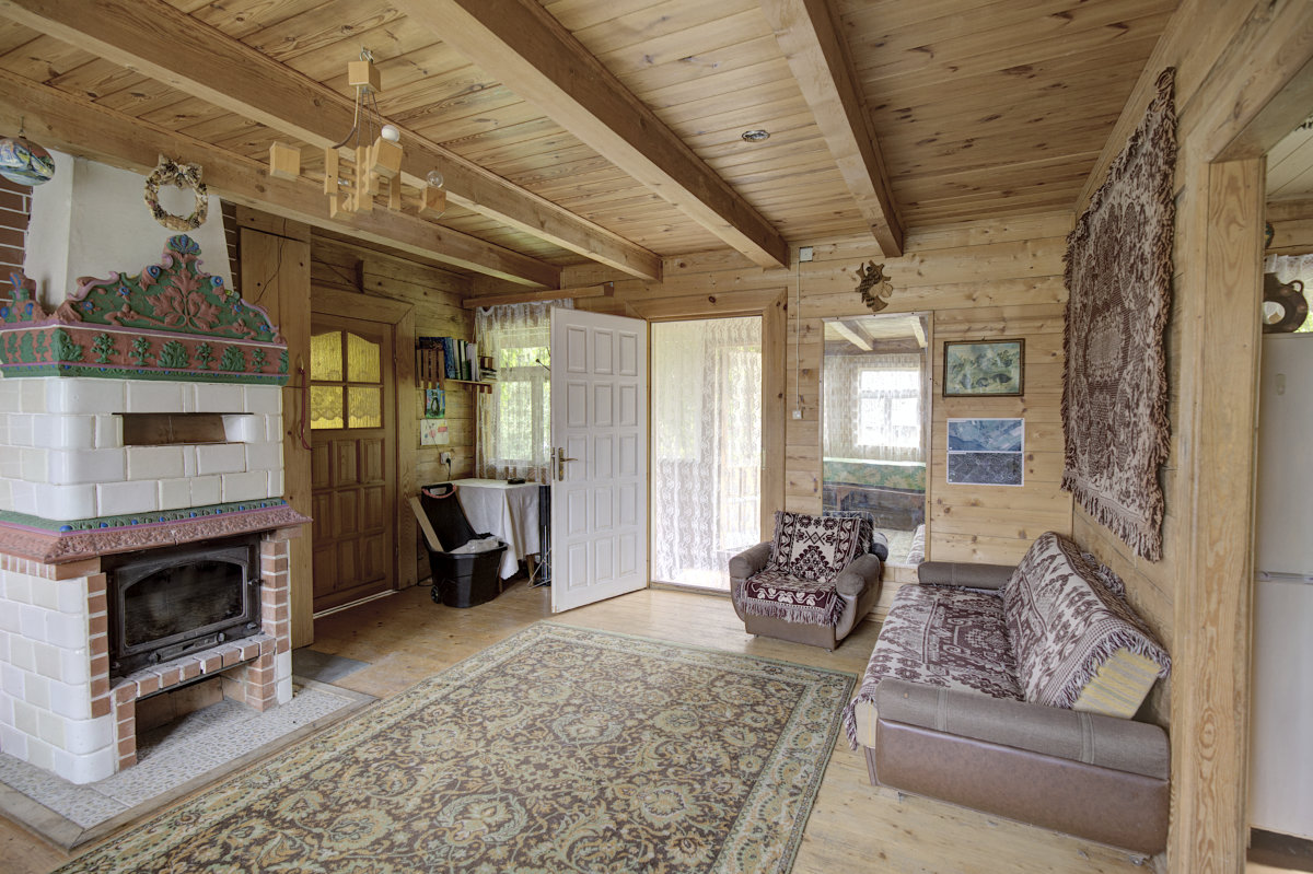 Bryła budynku składa się z parteru, na którym znajduje się pomieszczenie biesiadne, a w nim bez wątpienia uroku dodaje klimatyczny kominek wykonany z ozdobnych kafli glinianych pochodzących z pod białowieskiego dworu. Estetyczny wygląd kominka może stanowić element dekoracyjny, nadając wnętrzu unikalny charakter, a w chłodne wieczory płomienie i trzaskające drewno tworzyć będą przytulną atmosferę, która sprzyja relaksowi i odpoczynkowi. Do tego kuchnia, trzy sypialnie oraz trzy łazienki. Na poddaszu znajdują się natomiast 4 pokoje z trzema łazienkami.
